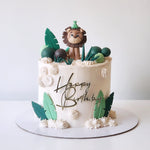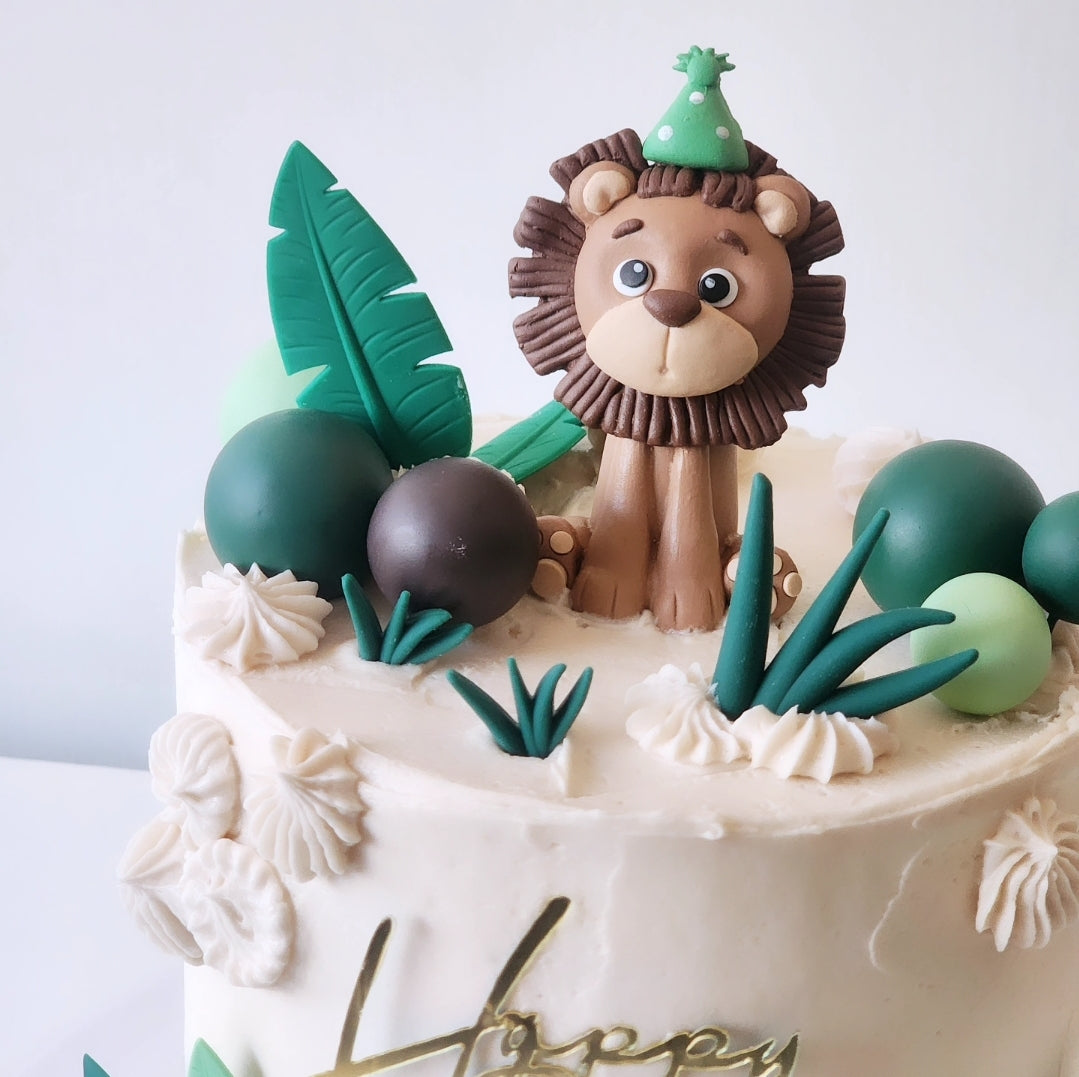 Unit price perThis playful jungle Wild One cake features a moist, fluffy chocolate or vanilla sponge layered with silky vanilla buttercream. Topped with an adorable lion and leafy jungle accents, it’s the perfect centerpiece for a little explorer’s big day. Sweet, fun, and full of character, this cake is sure to delight.