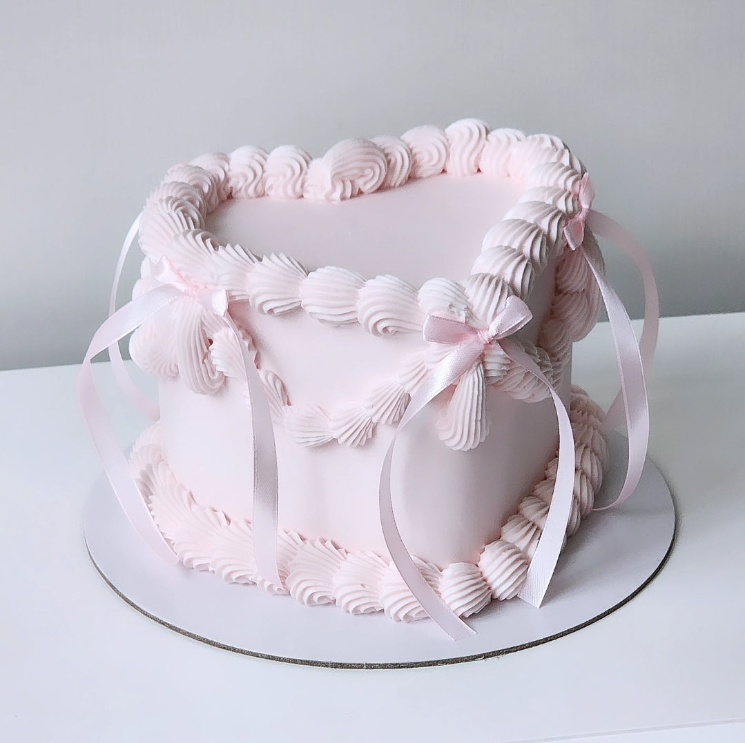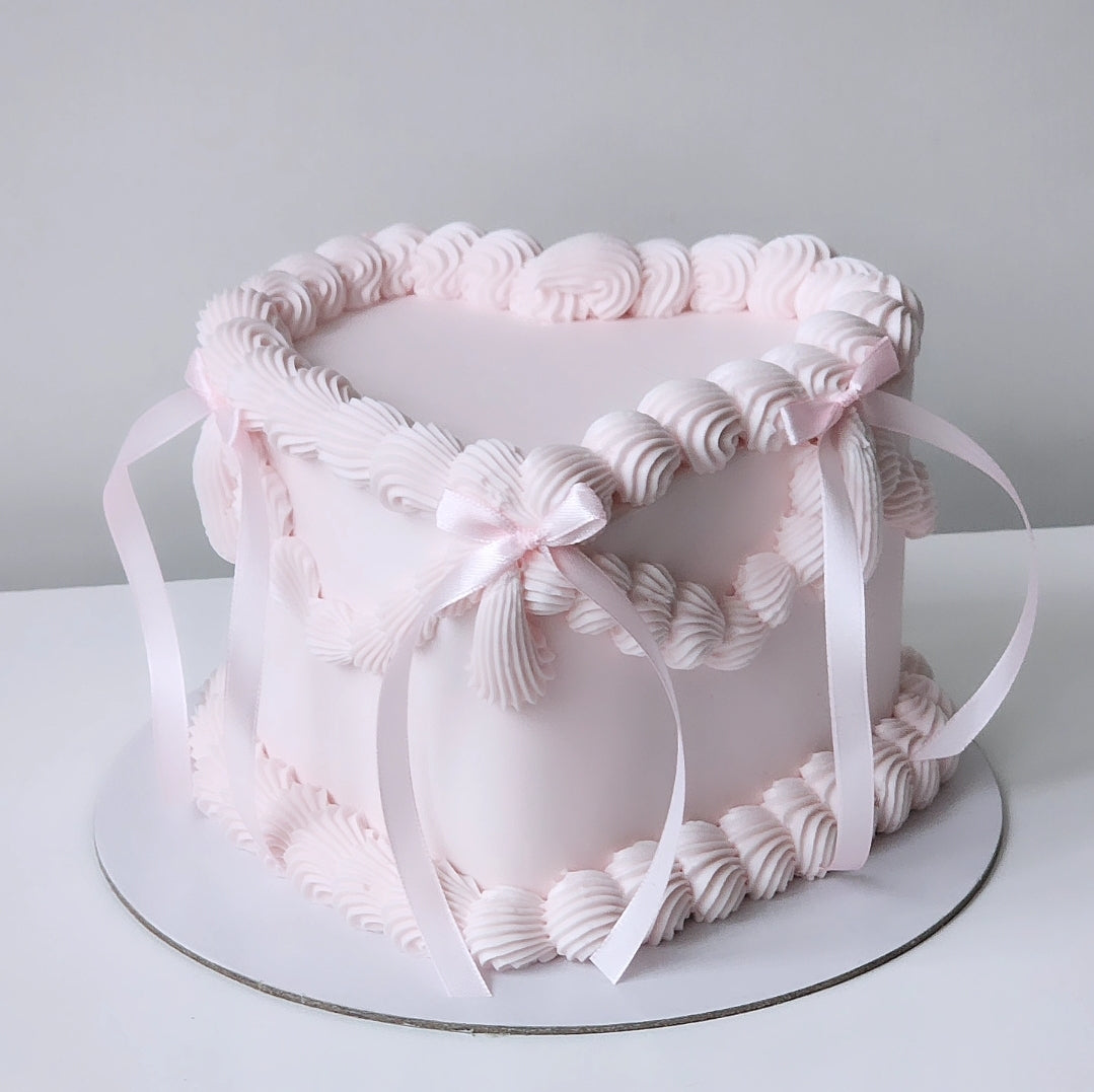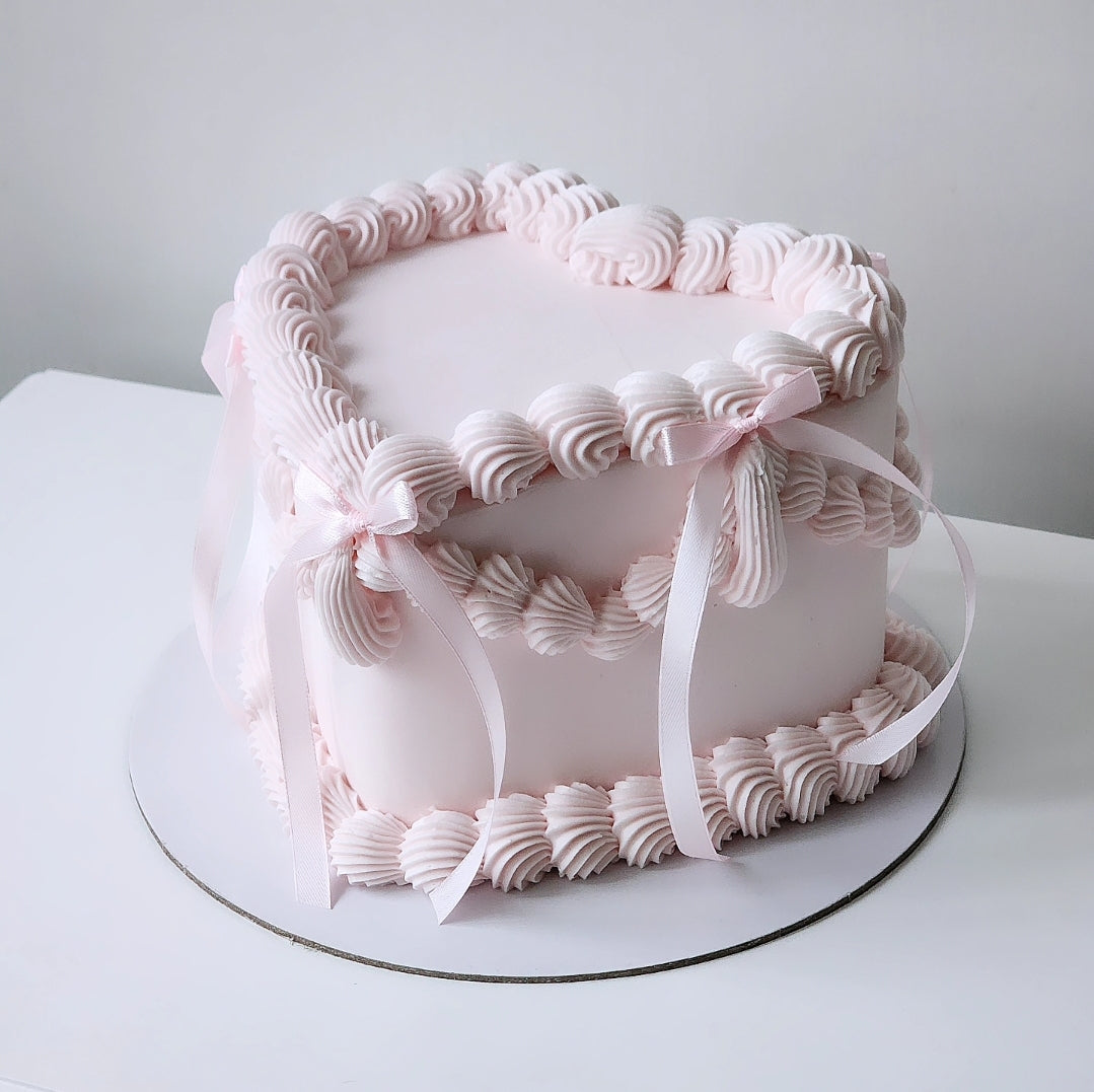 This cake features a soft and fluffy vanilla or chocolate sponge, layered with smooth vanilla buttercream frosting. It’s beautifully finished with delicate piped swirls and a satin ribbon for a refined, elegant touch. Perfect for a special occasion or simply to indulge yourself, this cake offers the perfect balance of classic flavour and irresistible sweetness.