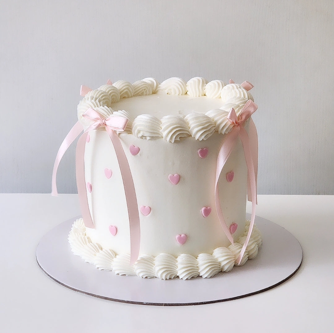 Unit price perIndulge in a classic and elegant dessert with this Charmed Cake. This cake is made with a moist and fluffy vanilla or chocolate sponge, and it's layered with a creamy vanilla buttercream frosting. The cake is then frosted with a velvety white delicate piped swirls, and Satin black ribbon, adding a touch of sophistication. Whether you're hosting a formal event or just want to treat yourself, this charmed Cake is sure to impress. It's the perfect combination of classic vanilla or chocolate flavour and indulgent sweetness.