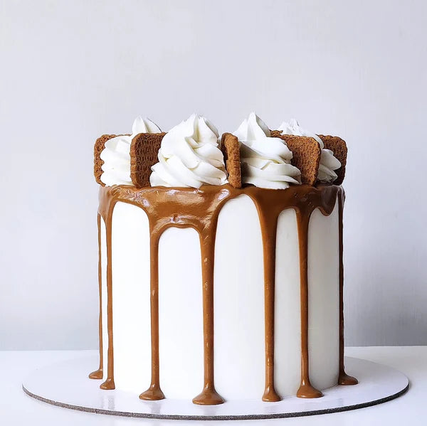 The cake is then topped with vanilla buttercream frosting and lotus biscuits, adding a crunchy and creamy twist to every bite. Whether you're hosting a party or just want to treat yourself, this Lotus Addiction Cake is sure to satisfy. It's the perfect combination of classic vanilla or chocolate flavour and indulgent lotus goodness.