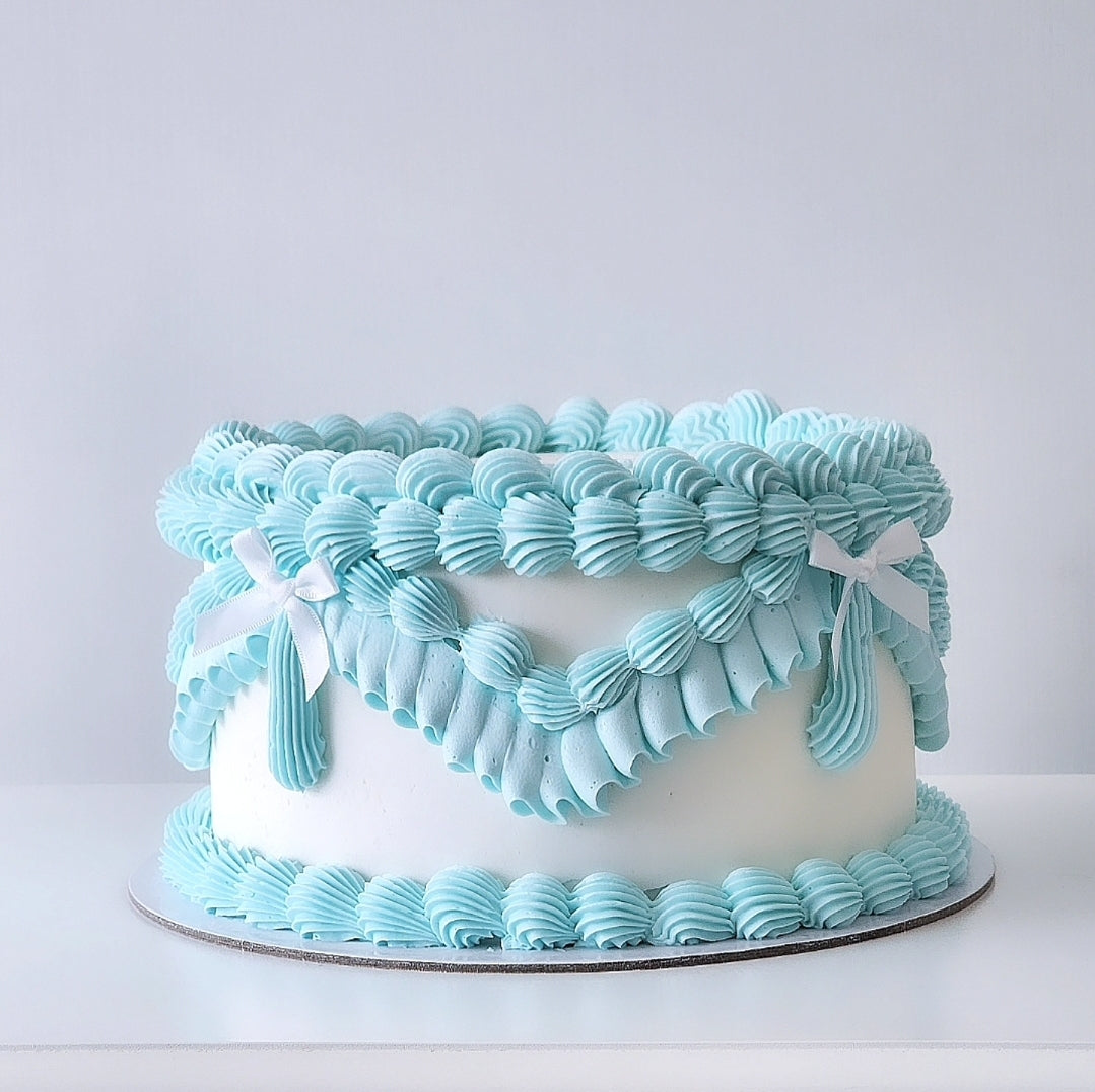 Unit price perIndulge in a classic and elegant dessert with this Royal Vintage Cake. This cake is made with a moist and fluffy vanilla or chocolate sponge, and it's layered with a creamy vanilla buttercream frosting. The cake is then frosted with a velvety white delicate piped swirls, and Satin ribbon, adding a touch of sophistication. Whether you're hosting a formal event or just want to treat yourself, this Vintage Royal Cake is sure to impress. It's the perfect combination of classic vanilla or chocolate flavor and indulgent sweetness.