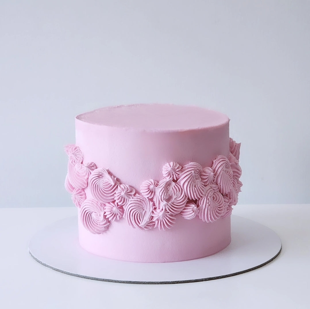 Indulge in a sophisticated delicious dessert with this Ella Cake. This cake is made with a moist and fluffy vanilla or chocolate sponge, and it's frosted with a swirl of creamy pink frosting. The frosting is made with confectioners' sugar, and it's flavoured with a hint of vanilla extract for added depth, and some piped swirls for a touch of romance and elegance.